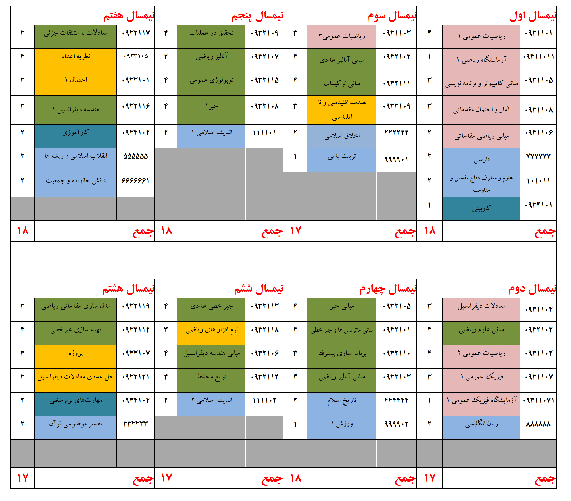 برنامه 8 نیمسال رشته ریاضیات و کاربردها ورودی 1400 و ما قبل